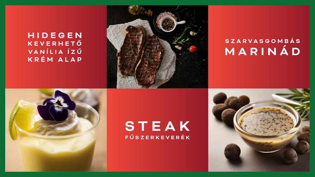 Progustodavid2025-11-04T15:34:28+01:00 Kezdőlap Termékek Receptek, hírek Rólunk Kapcsolat Search PRÓBÁLJA KI! Progusto Marinádok 1 kg-os tasakos kiszerelésben! Praktikus, gazdaságos....finom! Állandó minőség Nincs minőségbeli ingadozás; könnyű kalkulálhatóság Kiemelkedő termékminőség Világszínvonalú alapanyagok Saját labor Laborunknak köszönhetően képesek vagyunk gyorsan reagálni a piac igényeire Tanácsadás Bemutatófőzések, helyszíni termékfelhasználási tanácsadás KÉSZÜLJ VELÜNK A KARÁCSONYRA! Letölthető kiadványaink Marinádok Termékfelhasználási javaslatok Nedves Panír szórólap Füstös termékek szórólap AKTUÁLIS ÁRLISTA